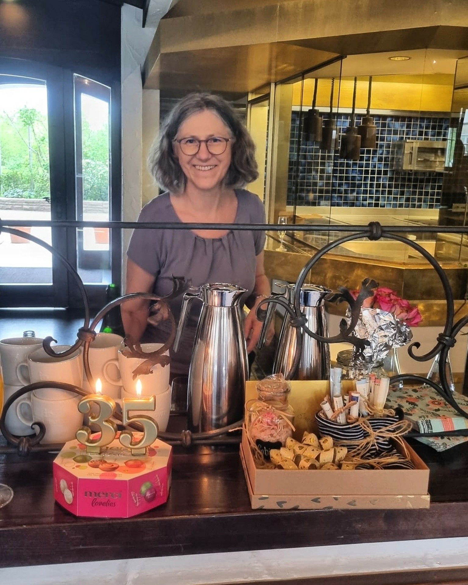 Unsere wunderbare Mitarbeiterin Sabine ist seit unglaublichen 35 Jahren Teil unseres Teams. Als Herz und Seele unseres Einkaufs hat sie unser Hotel mit ihrer Leidenschaft, ihrem Engagement und ihrem unermüdlichen Einsatz bereichert.