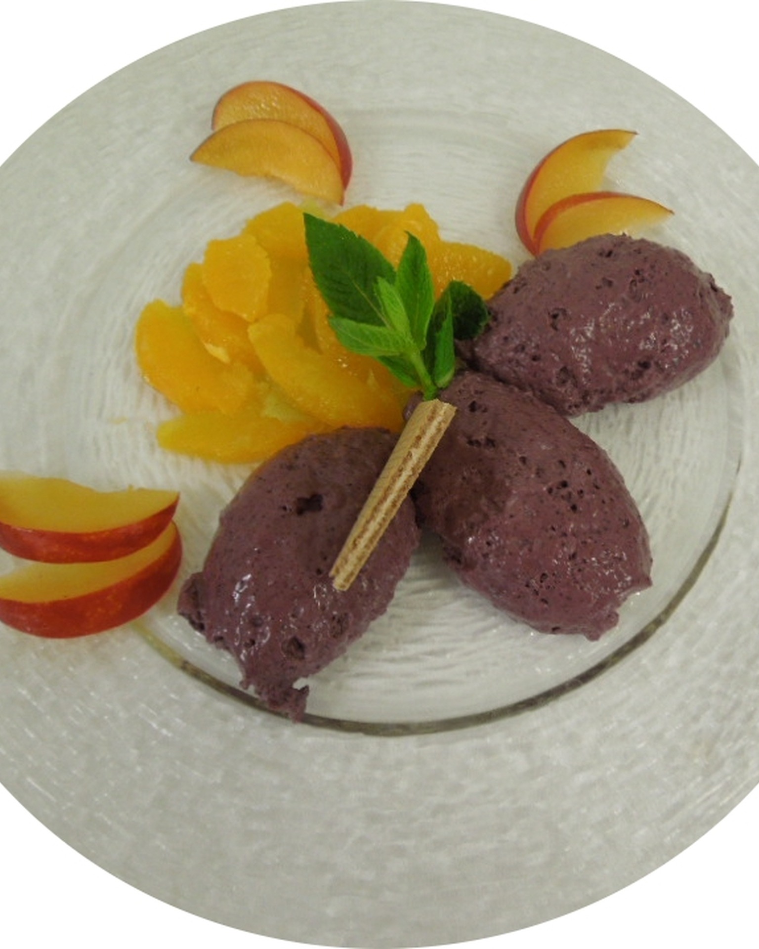 Buttermilch- Blaubeermousse mit einem Ragout von Zitrusfrüchten